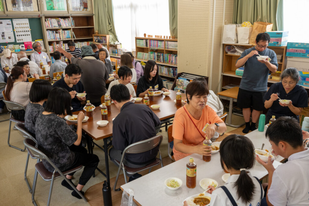 昼食は、図書室で社協六島支部の活動として、参加者全員でカレーをいただきました。