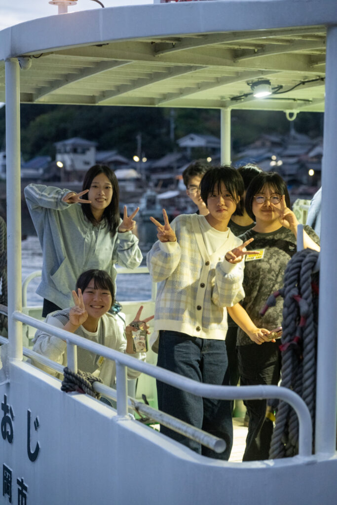 皆、島民の方々の優しさを一様に感じたとの感想があげられていました。2人の学芸会もかなりインパクトがあったようです。問題解決型の地域学が多いのですが、やはりその地域の方々との交流の中で自分自身何か感じるものがないとなかなか楽しみながら地域と関わることは難しい気がしいます。今回、いつもはいない高校生の方々が島の応援に来てくれているという事だけで多くの笑顔が見ることが出来ました。午後からの散策では、島の風景や猫、シーグラスなど時間を忘れて楽しんでくれている姿は大人にはない「島を愉しむ」という姿勢と、SNSへの発信に関してはその視点と発信のスピード、クオリティにおいてもハイレベルで頼もしく思いました。