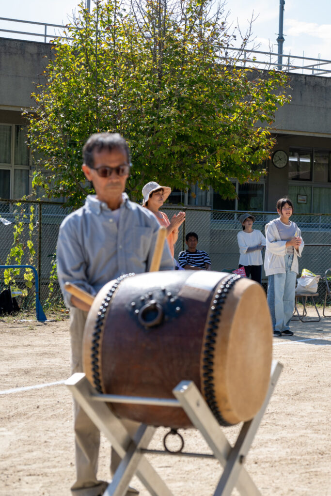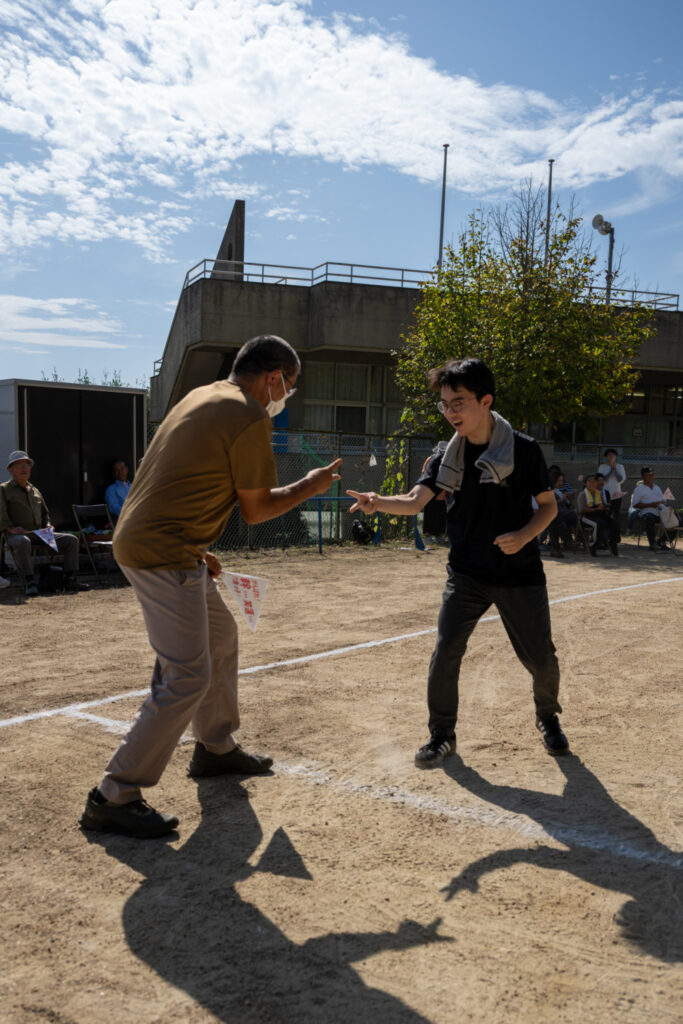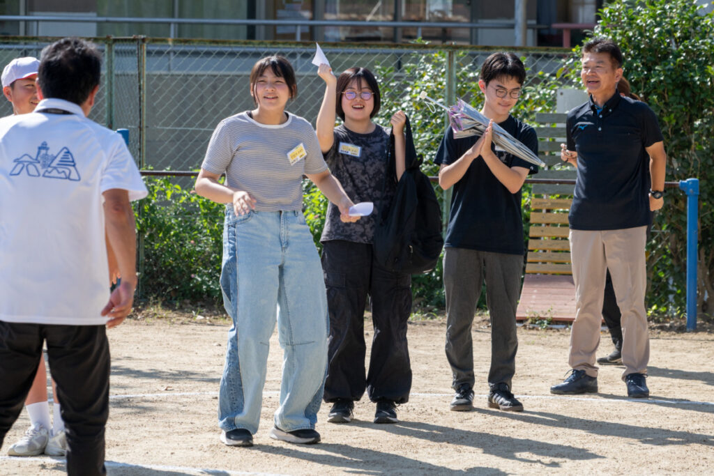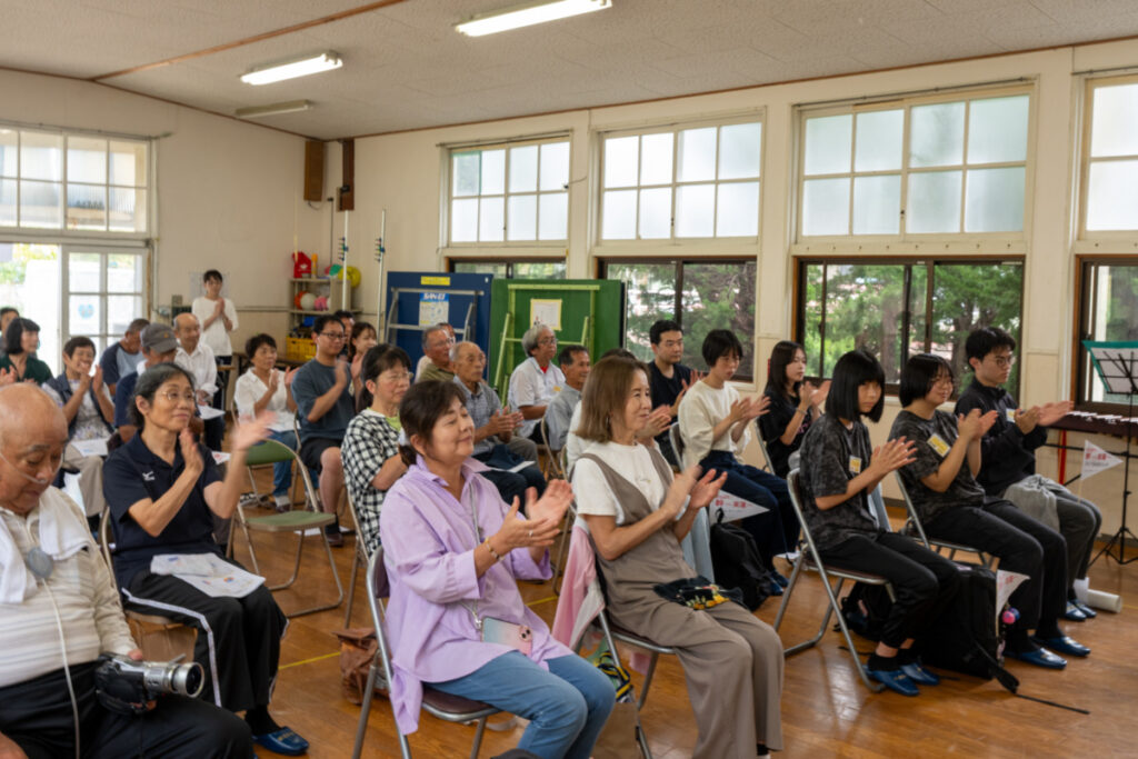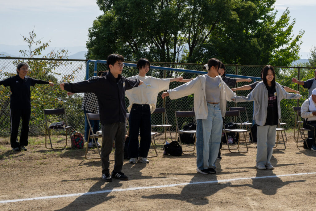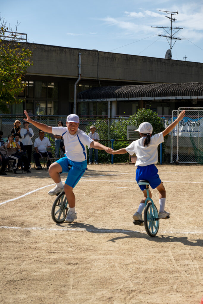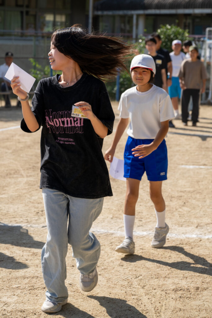 堂々として入場行進には会場から大きな拍手がありました。メインは2人による一輪車の練習成果の披露、借り物競争、じゃんけんリレー等、参観者も一緒に体を動かしました。参観の島の方々も70代がほとんどで、高校生が率先して参加してくれて本当に助かった感じです。島の方々もその動きに背中を押される感じでいい感じで交流が出来ました。