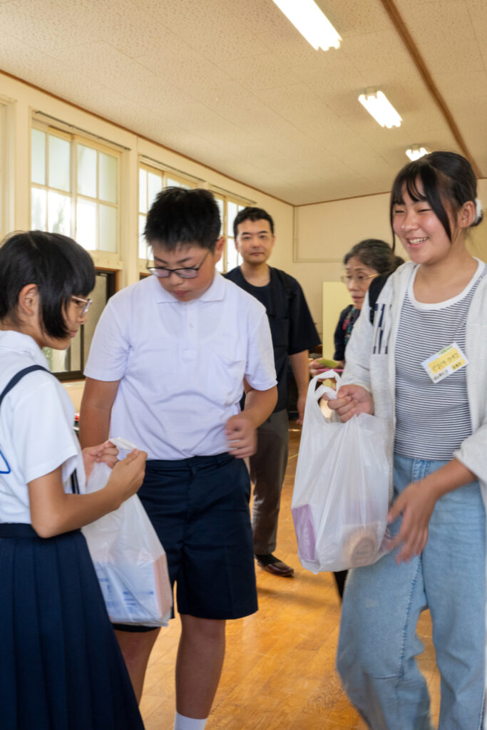 高校生たちは食後に大きな仕事が待っていました。校長先生からのお願いで、講堂からの物品の移動をお願いしたいということで、机の移動やいすの移動を手伝っていただきました。校長先生からは、高校生の皆さんのおかげでフェスティバルが盛り上がったこと、片づけについても大変助かったとのお礼のお言葉をいただきました。