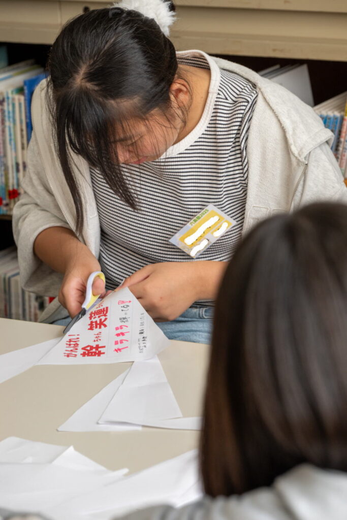 高校生たちは食後に大きな仕事が待っていました。校長先生からのお願いで、講堂からの物品の移動をお願いしたいということで、机の移動やいすの移動を手伝っていただきました。校長先生からは、高校生の皆さんのおかげでフェスティバルが盛り上がったこと、片づけについても大変助かったとのお礼のお言葉をいただきました。